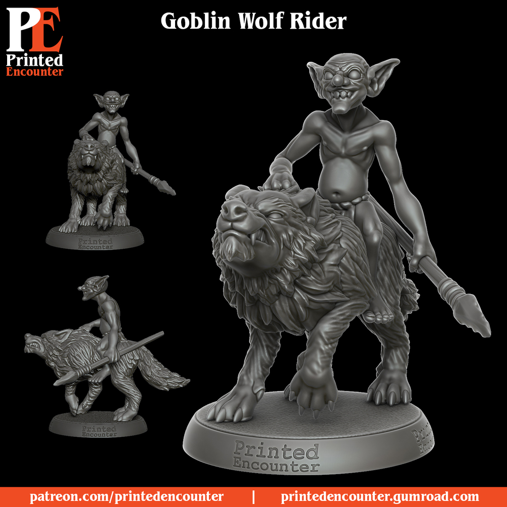 Goblin Wolf Rider APrinted EncounterSupport on Patreon!PaintedModels are set at at around 28-32mm scale and shown on 25mm base for reference, resize in slicer as desired.All files and products created using these files are for personal use only, you may not sell or distribute them in any way.Merchant license available hereOf course handing free stuff out to your friends or gaming group is always OK. Videos and livestreams featuring my stuff is fine too, credit would be appreciated though.This product is not currently for sale.$0+0usdFreeTips are appreciated ❤️$1+1usdPre-supportedFree for patrons!20usdName a fair price:$STL files for 3D printingAdd to wishlist New wishlistShareShare on XShare on Facebook Copy linkCopy product URL